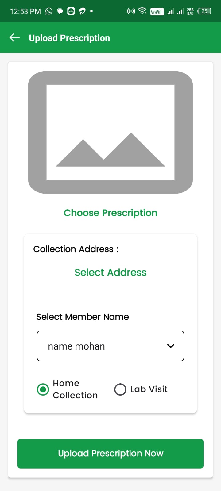 - Prescription Upload: Easily upload your prescriptions for accurate test recommendations. Our app supports multiple formats, making it simple to provide the necessary documentation.